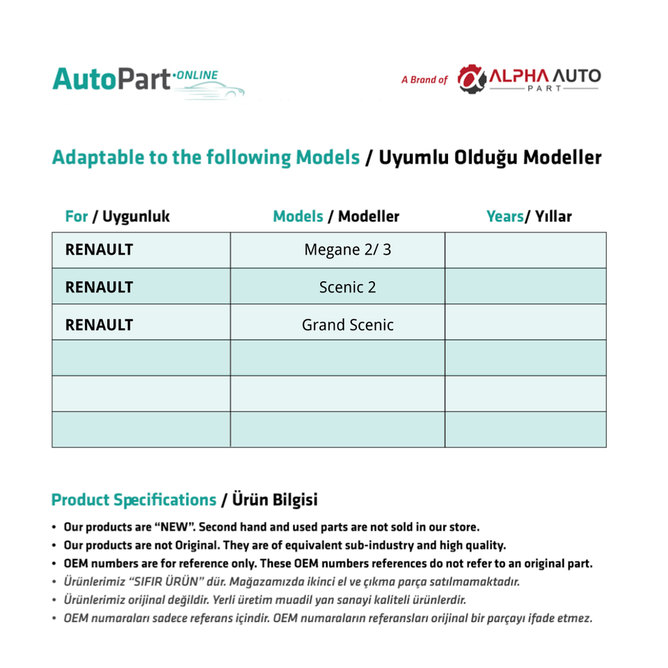 Modèle de voiture:Megane 2 Megane 3 Scénique 2