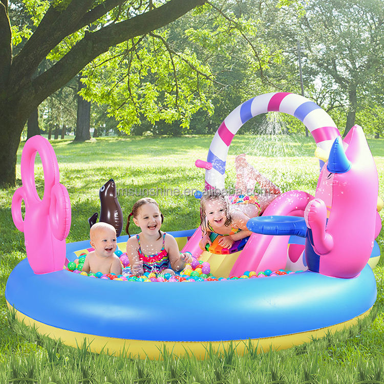 Piscine gonflable multifonctionnelle pour enfants, thème cirque, en PVC, avec toboggan aquatique et pulvérisation d'eau, nouvelle collection Sunshine