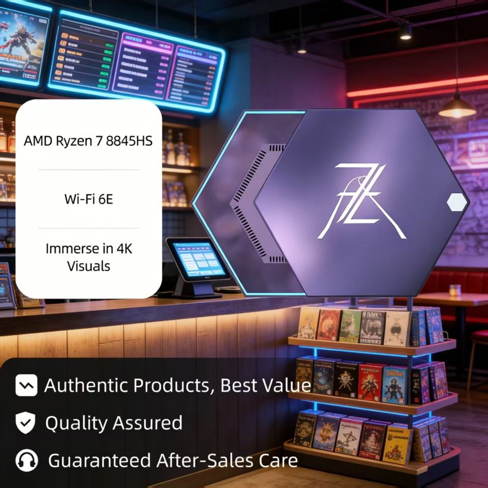 Mini PC Sunshine Purple BT5.2 Wi-Fi 6 pour salles de jeux et salles de fête, enregistrement facile des scores et de la gestion du temps des lieux