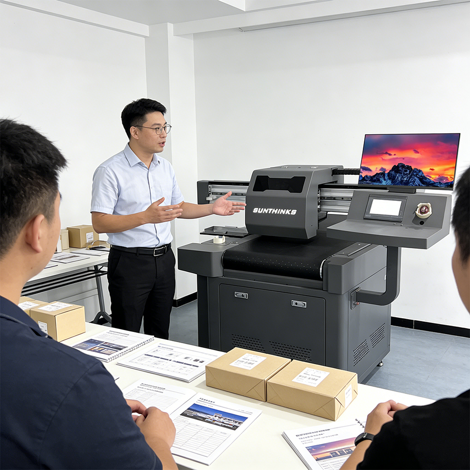 Machine d'impression à passage unique Sunthinks SC300 avec tête d'impression HP pour l'impression de boîtes de pizza en carton ondulé, conforme à la FDA