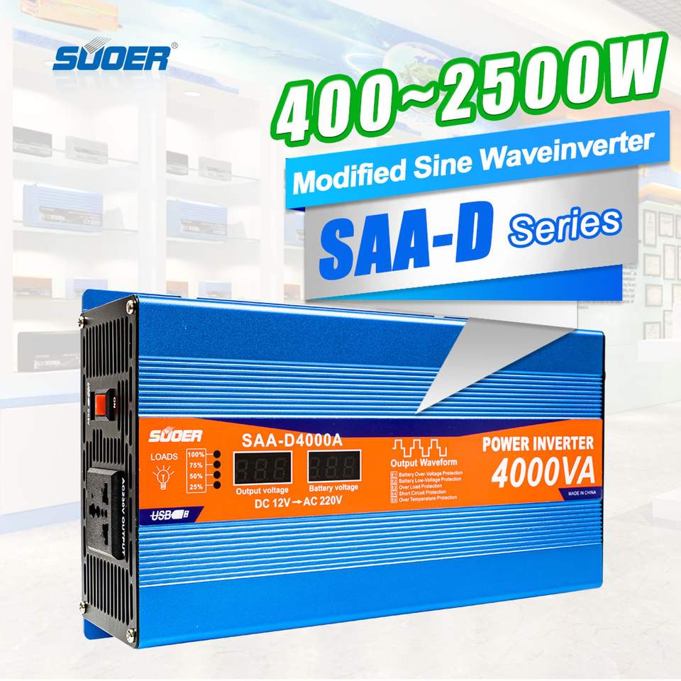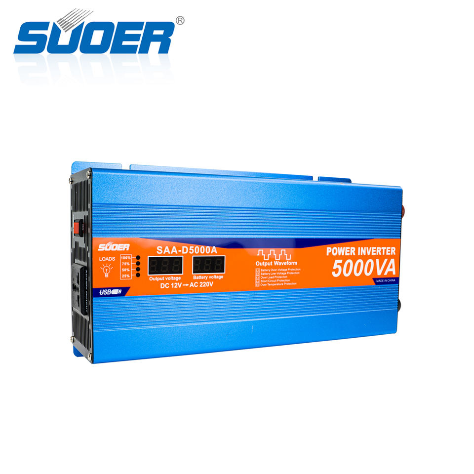 Convertisseur Suoer SAA-D5000A 12V, onduleur à onde sinusoïdale modifiée, onduleur de puissance avec affichage, 5000w, chargeur de batterie UPS