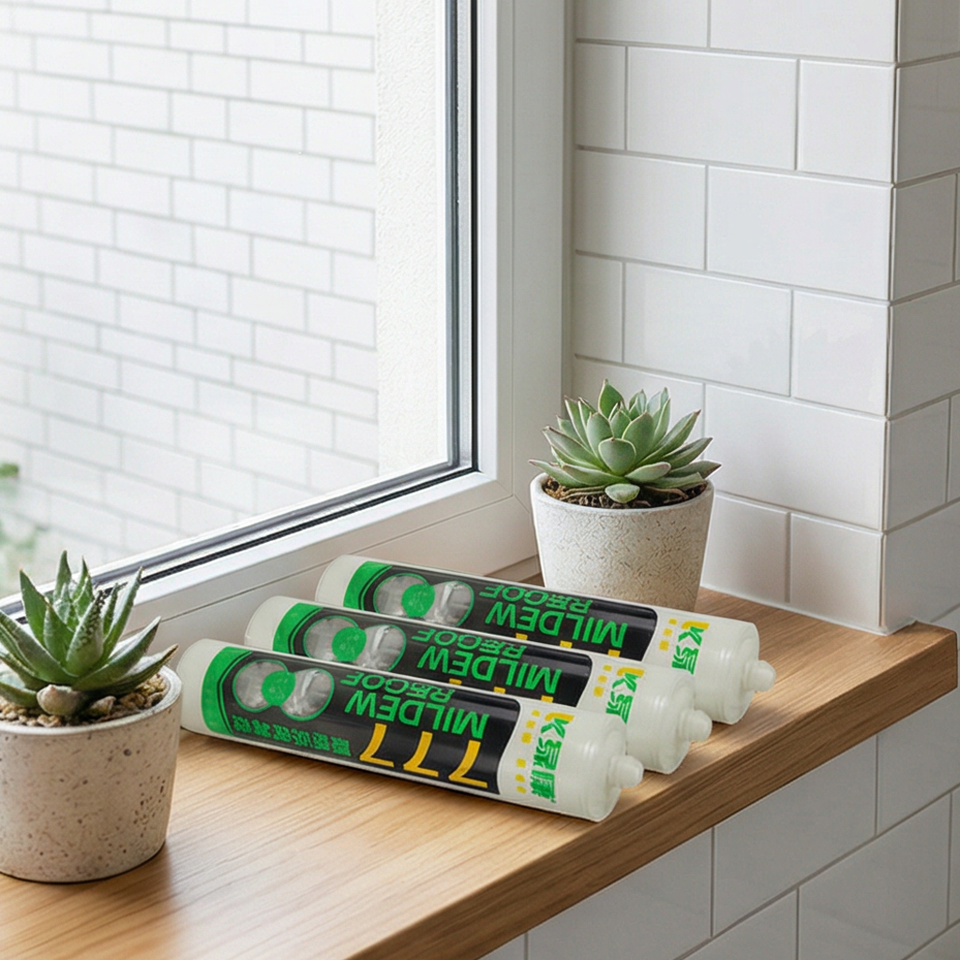 Scellant silicone acide anti-moisissure de niveau 0 supérieur pour l'étanchéité des bords des cabines de douche et des cloisons en verre