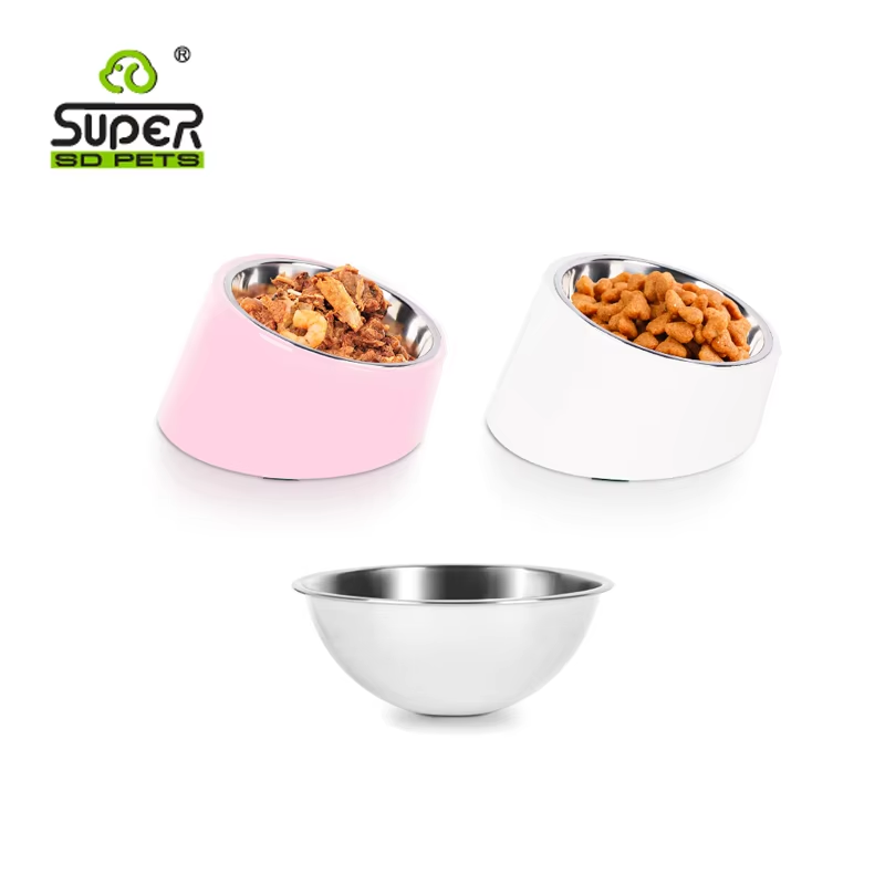 Bols automatiques inclinés à 15 degrés pour animaux de compagnie, bol léger en acier inoxydable et mélamine pour chats et chiens d'intérieur