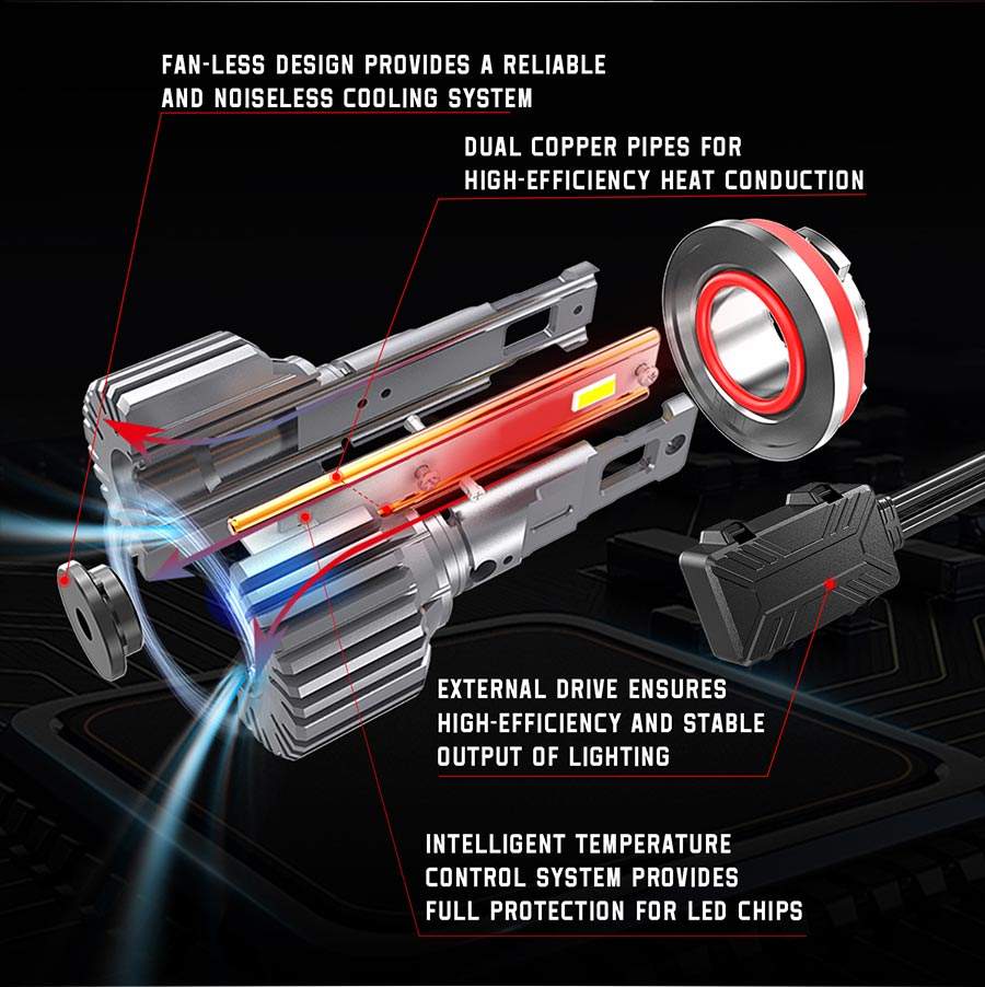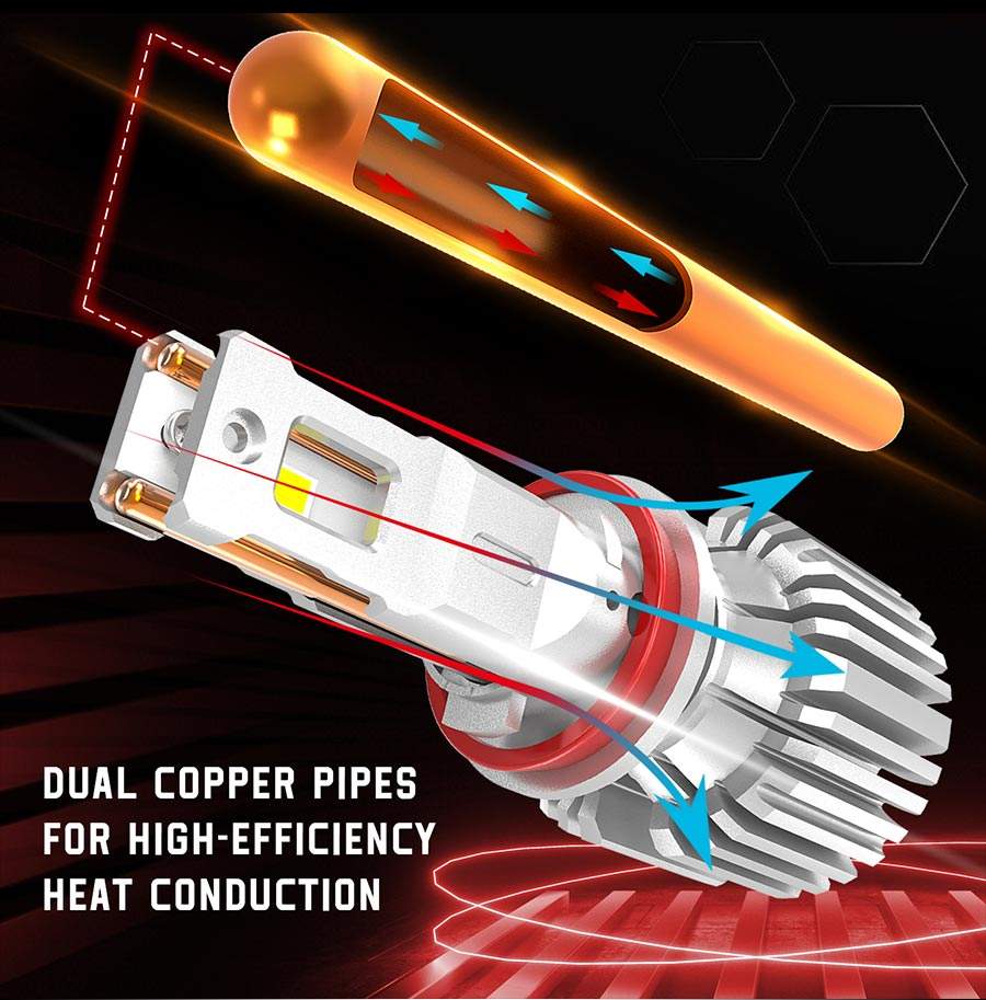 Super Bright Auto Car Led Light H7 9005 H11 Pas de ventilateur Ampoules de voiture 6500K avec G-XP Puces 6000LM Tube de cuivre H1 H3 LED Ampoules de phare