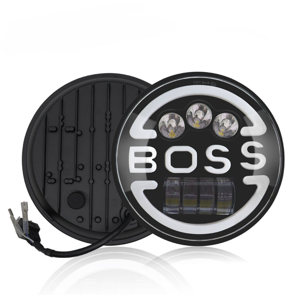 Phare LED rond BOSS 7 pouces super lumineux, 75W, faisceau haut/bas, feux de jour DRL, ampoule H4 Halo pour Jeep, 7000LM 6000K, vente chaude