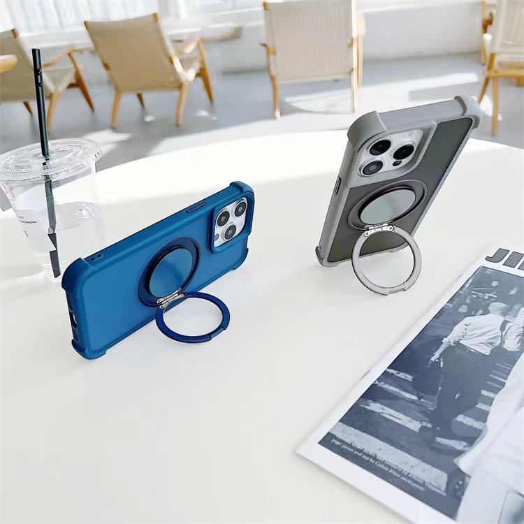 Super Pare-chocs Antichoc Armure Givré PC TPU 2 en 1 Mobile Shell Mat Magnétique Rotatif Anneau Support De Protection Housse De Téléphone