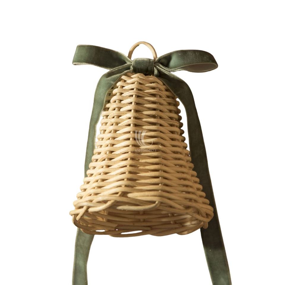 Décoration de cloche en rotin en gros abordable super bon marché, ornements suspendus de Noël tissés à la main pour les arbres du Vietnam