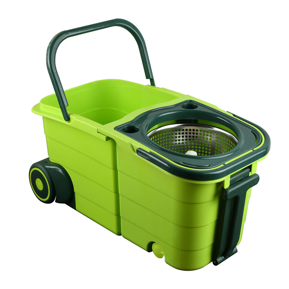 Seau de vadrouille rond en microfibre super pratique avec manche pliable en aluminium et tête en éponge pour le nettoyage de la maison