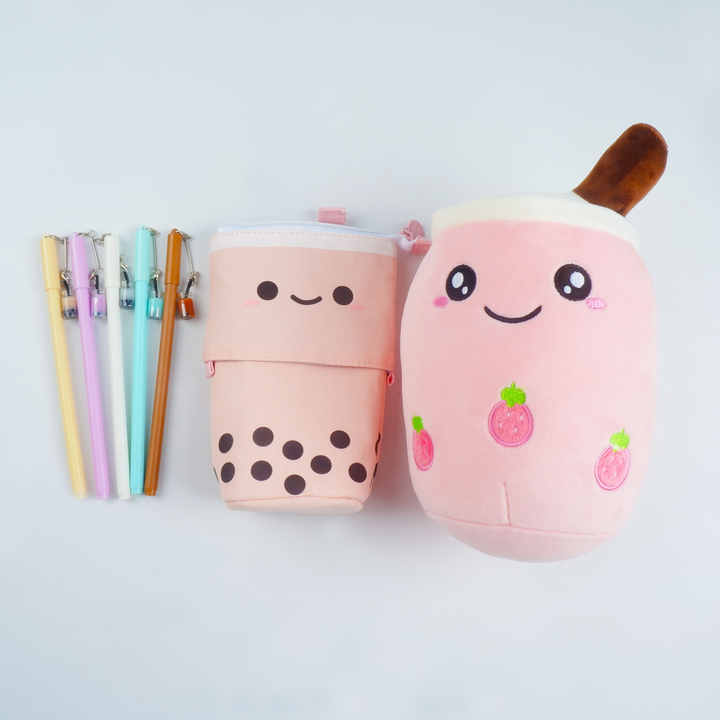 Super Cute Boba Milk Tea Set Plush Toy + Pencil Case + Pen Gift Set Stationery Theme Set