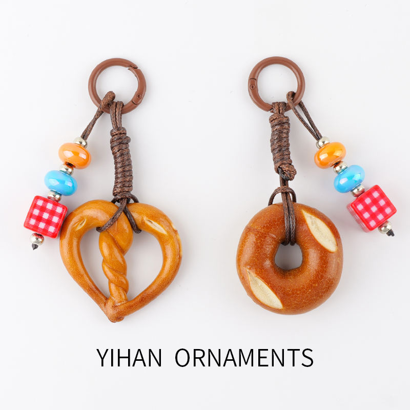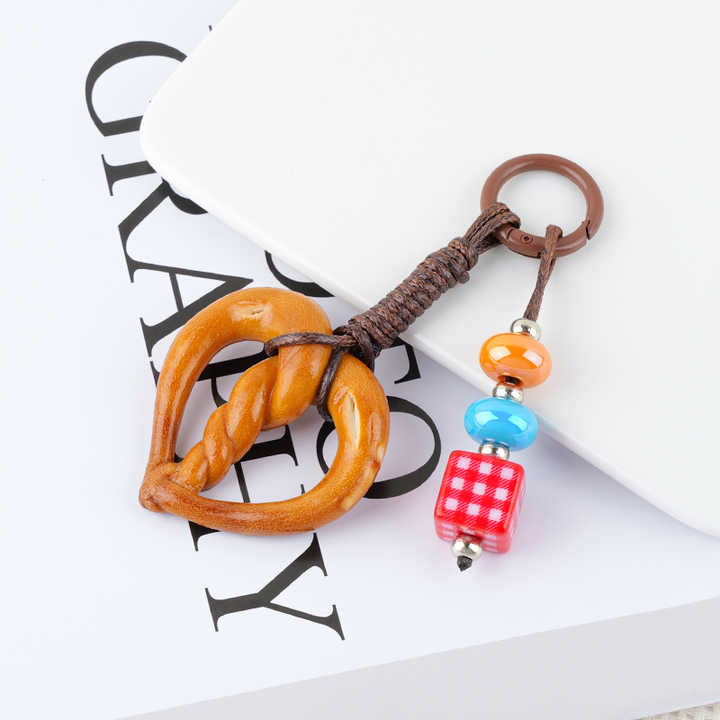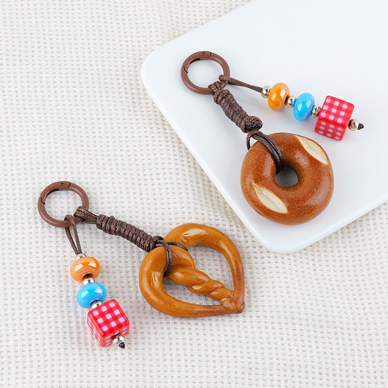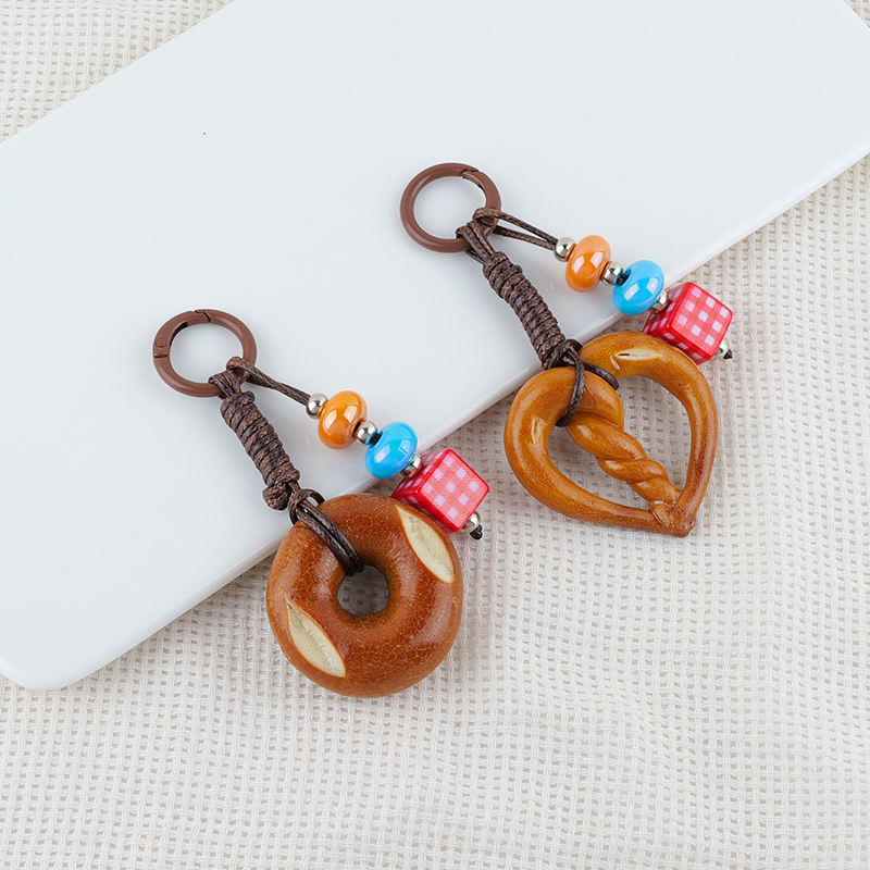 Super mignon en forme de nourriture en métal porte-clés mode dessin animé alcalin eau pain pendentif tissé à la main chocolat porte-clés lanière