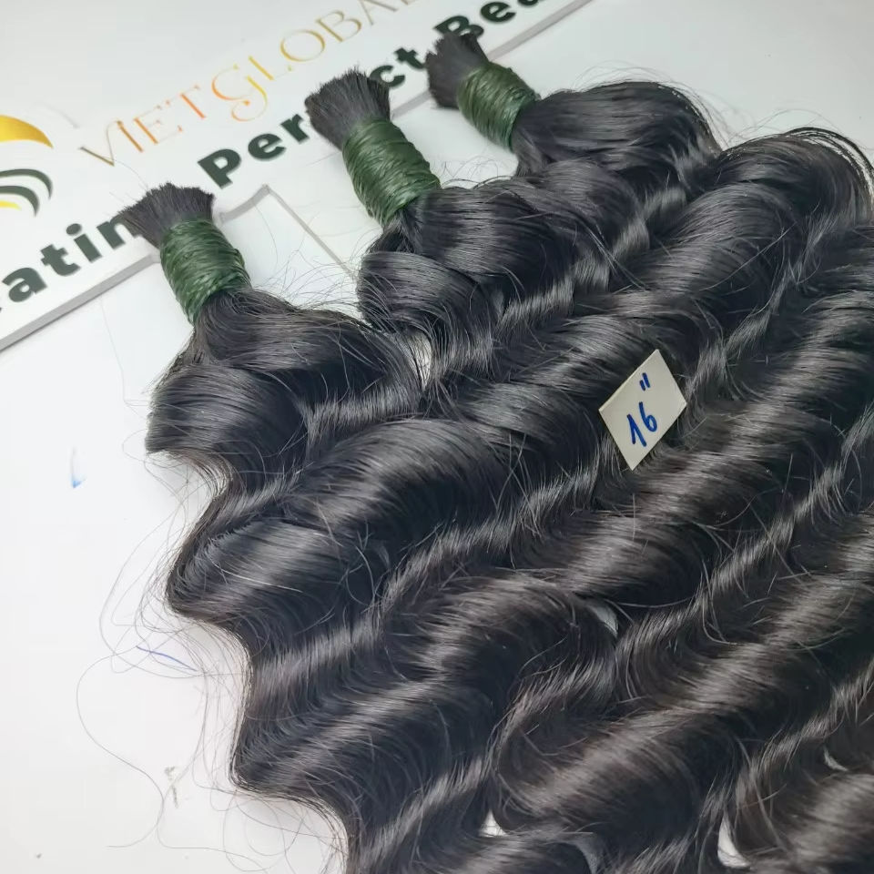 Extensions de cheveux en vrac de haute qualité super doublement étirées cheveux tressés vietnamiens bruts bouclés profonds prix de gros