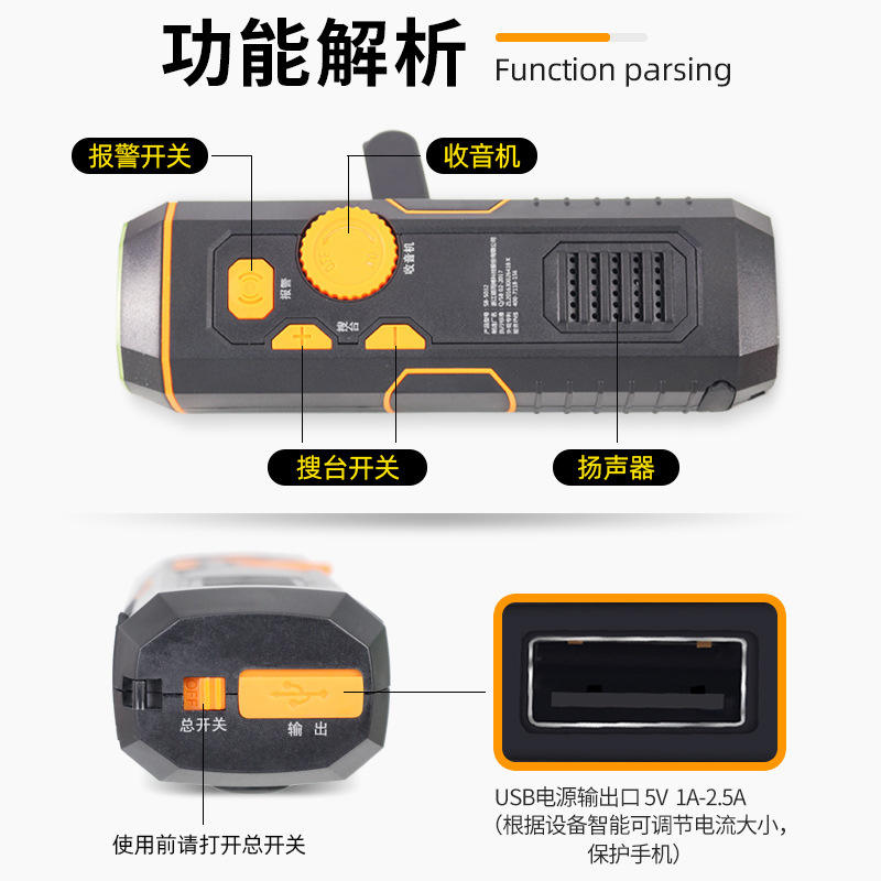 5032 Hand-cranked flashlight (orange)color