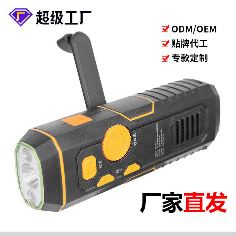 Lampe torche radio à manivelle multifonction portable d'urgence avec éclairage LED pour l'extérieur – Qualité supérieure