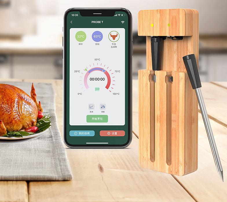 Super rapide 2 sondes sans fil IP67 étanche thermomètre à viande numérique en acier inoxydable cuisson intelligente Bluetooth APP connexion