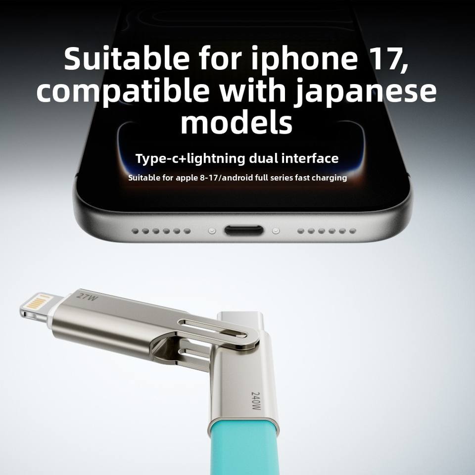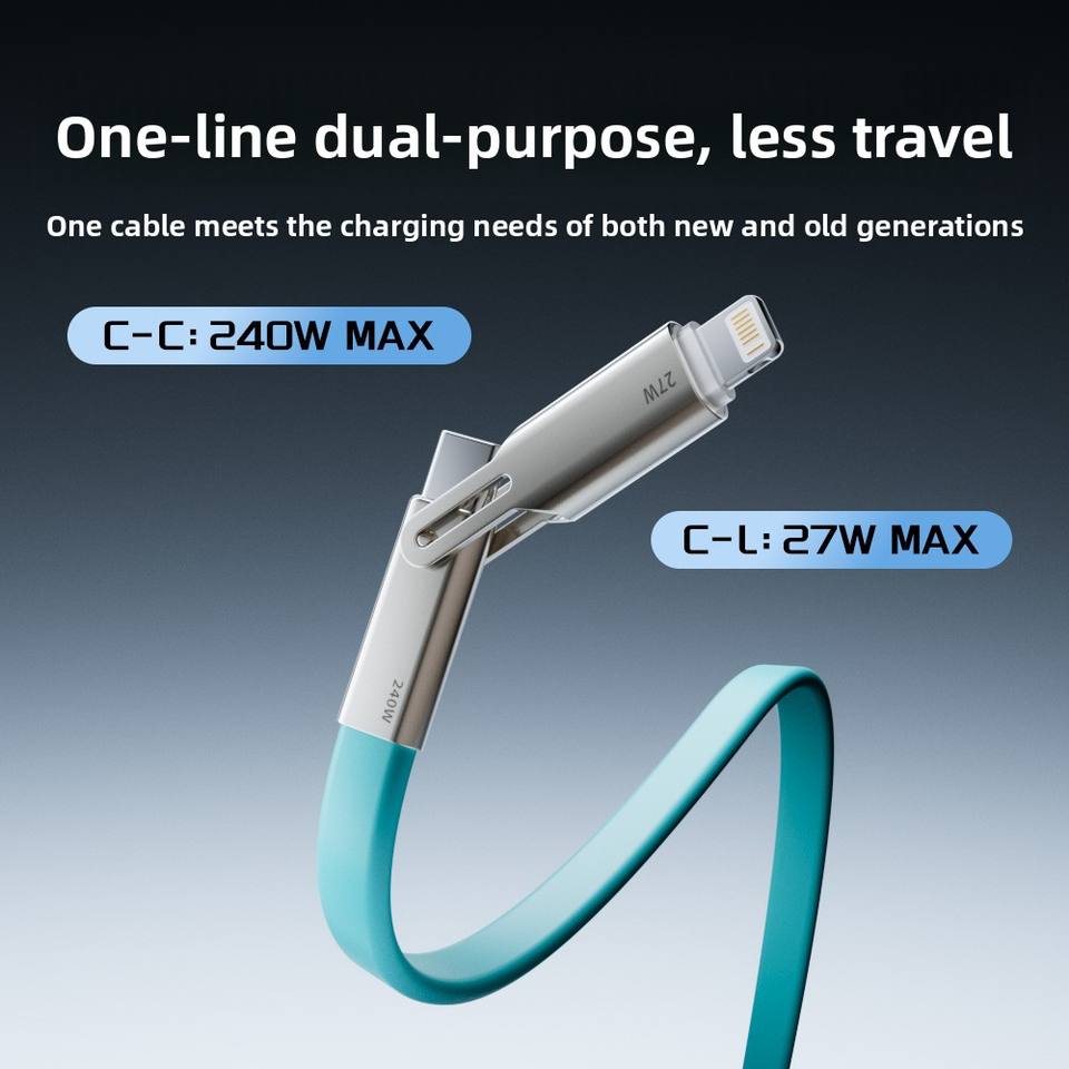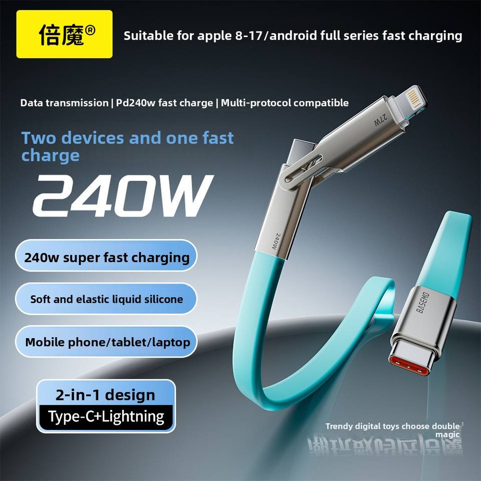 [Câble de données à double tête en silicone liquide 2-en-1 Baimo 240W] avec connecteurs Micro USB/Type-C [Charge ultra-rapide]