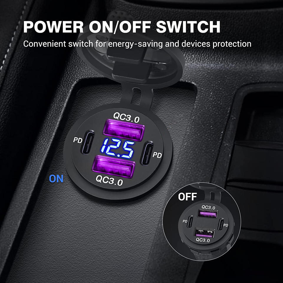 Super rapide double PD3.0 30W QC3.0 plusieurs ports USB 12V prise USB 4 ports chargeur de voiture prise pour bateau marin moto RV Golf