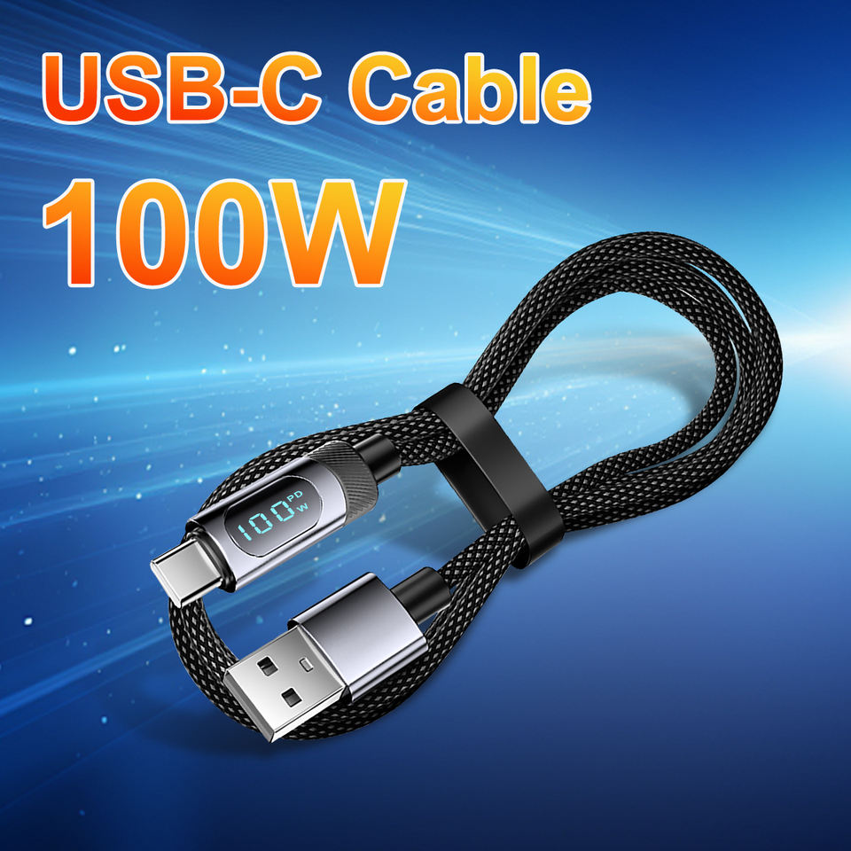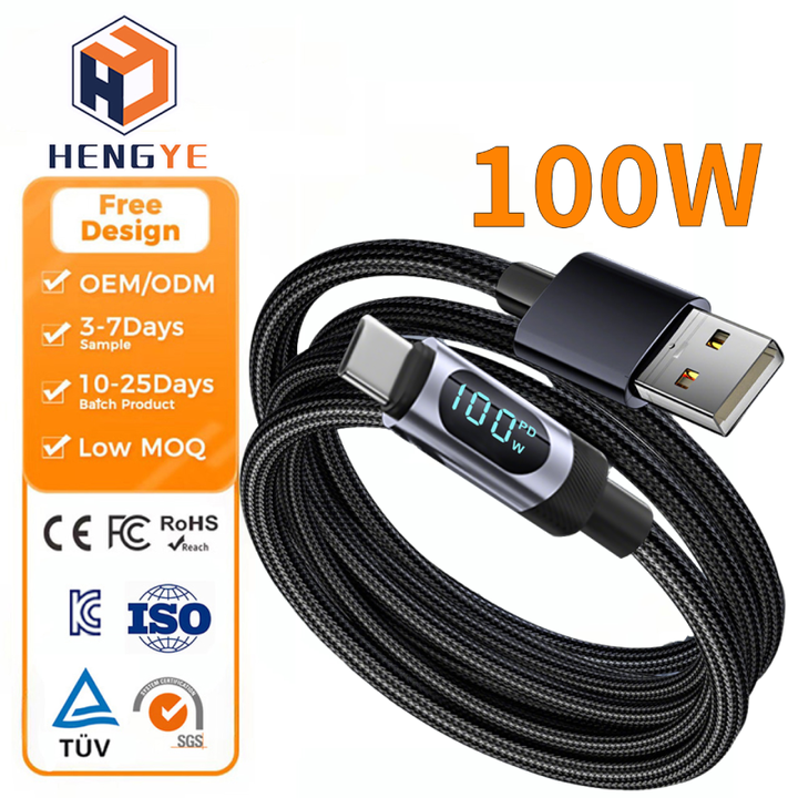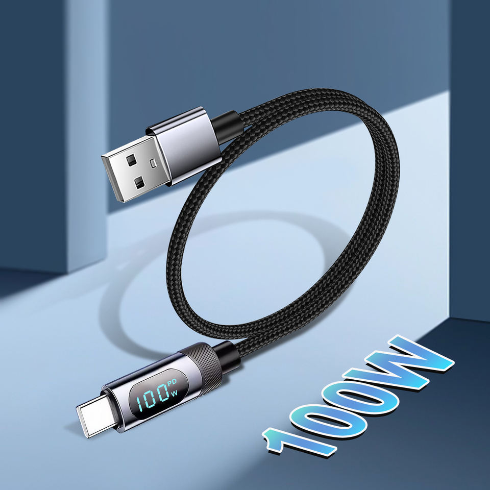 Super Fast Phone Charging Carble USB a to C 1.2M 2M Real-time Digital Type C Led 5a Pd 100w Nylon Braided Cables