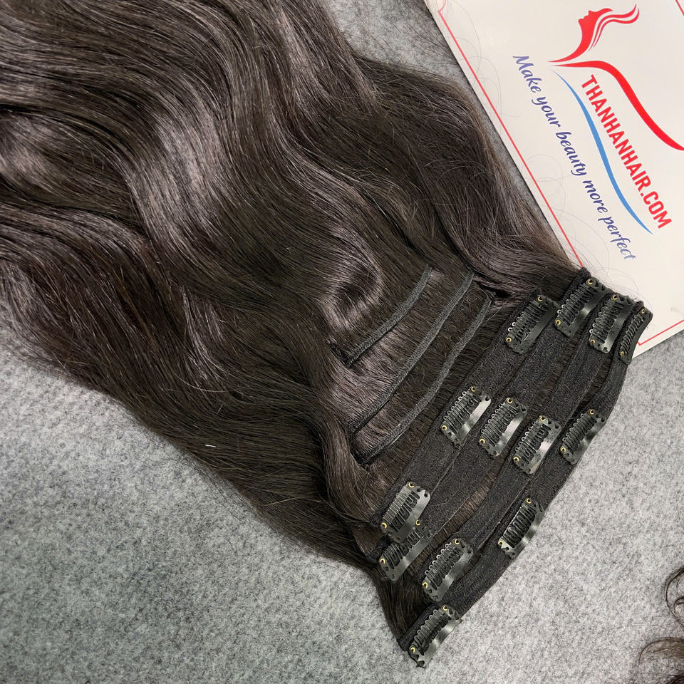 Extensions de cheveux humains droites vietnamiennes de très haute qualité, 10 à 40 pouces, pince ondulée naturelle de couleur noire