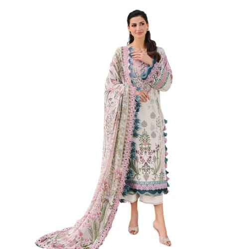 Super Hit Collection Heavy Pure Lawn Robe pakistanaise pour femmes Broderie Travail Teint uni avec tour de taille naturel pour adultes