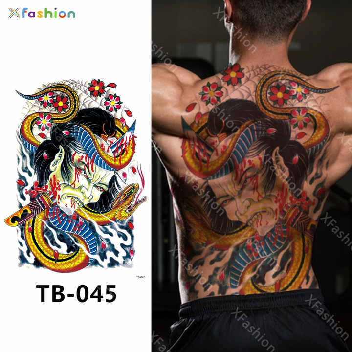 Autocollant de tatouage temporaire couvert de dos complet Super grand autocollant de tatouage de conception de tigre de dragon féroce effrayant
