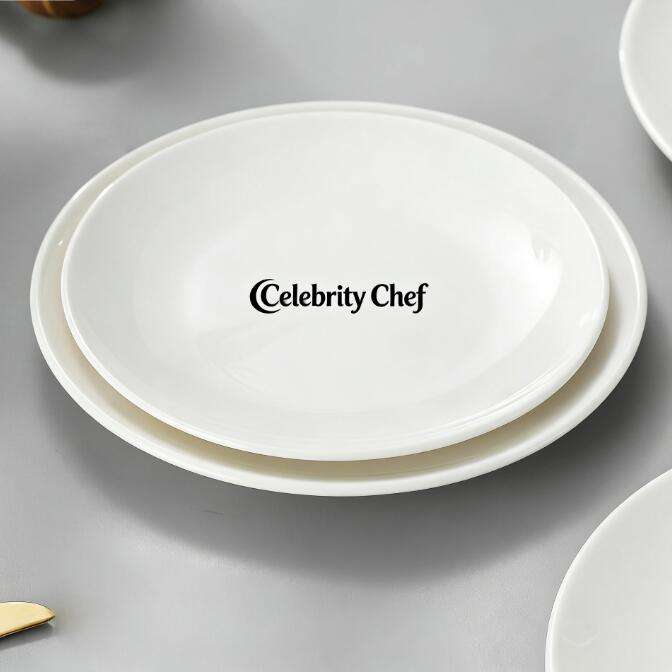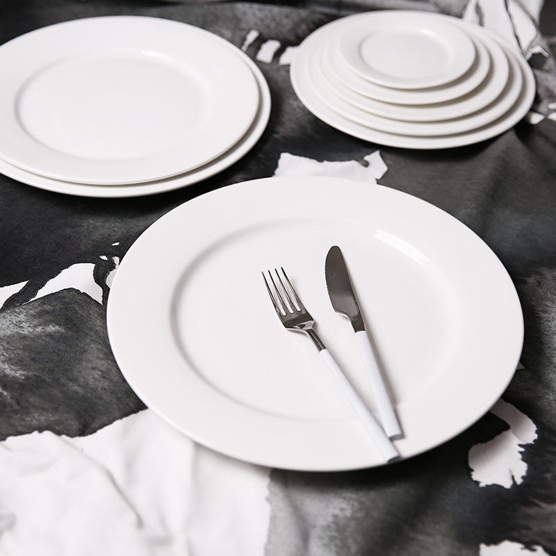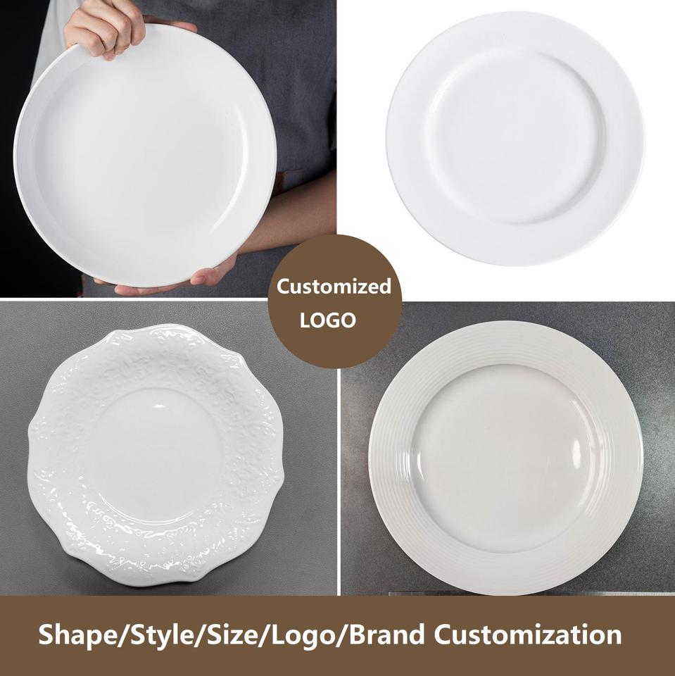 Assiettes blanches super grandes en céramique personnalisables, style occidental, assiettes en porcelaine pour hôtels, assiettes plates pour utilisation dans les hôtels et les restaurants
