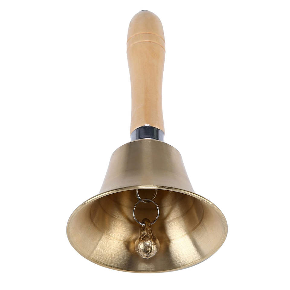Cloche d'appel à main en laiton massif super forte avec manche en bois pour les mariages école de Noël pour l'artisanat du métal