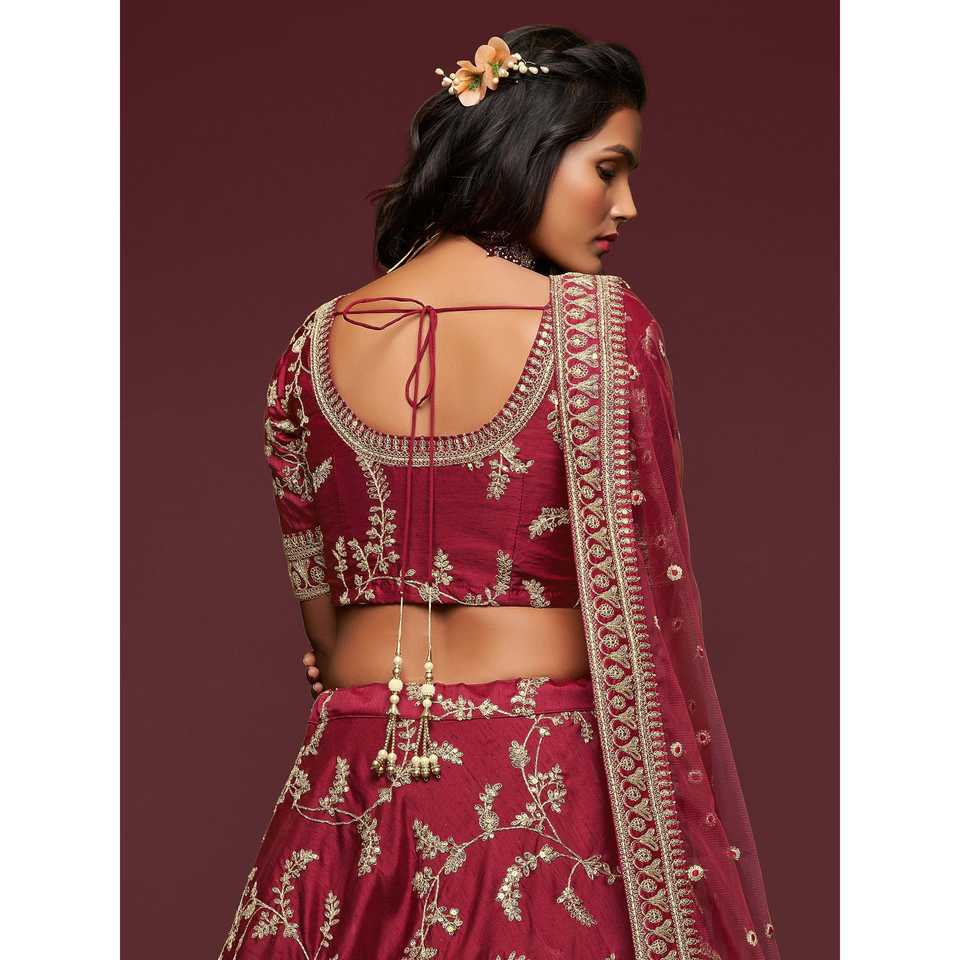 Superbe Lehenga Choli de mariage en soie brodée fil rouge bordeaux, semi-couture, 2,5 kg, fabrication artisanale
