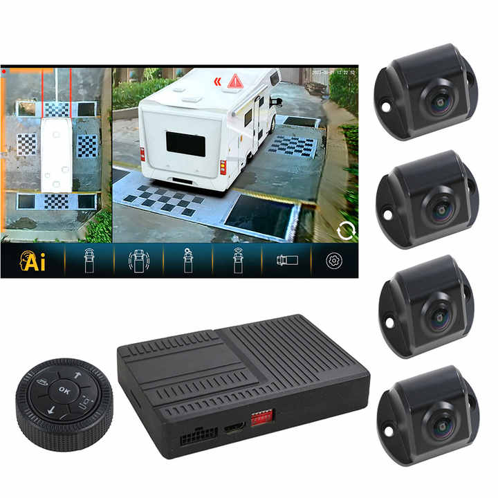 Caméra de voiture Super Night Vision 3D 1080P 360 AI autour du système de vue pour camping-car RV aide à l'inversion de voiture