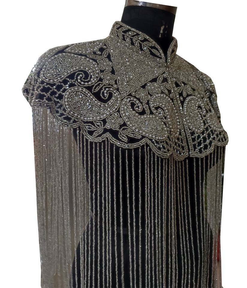 Description:Broderie à la main très lourde et pompons brillants perlés à la main.