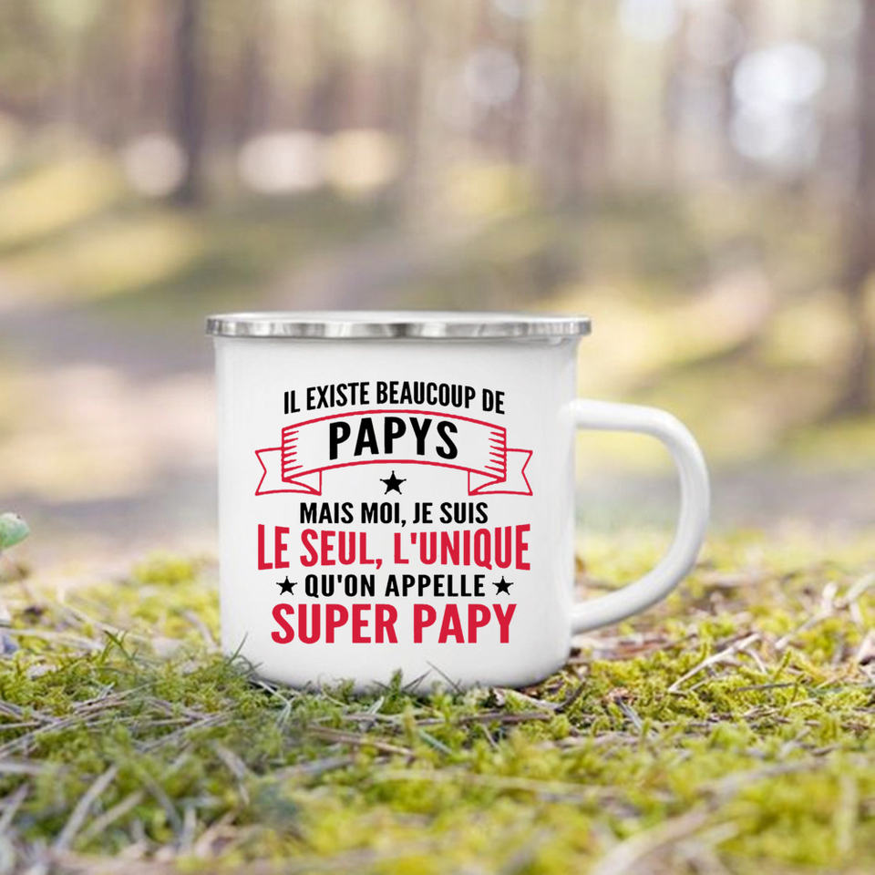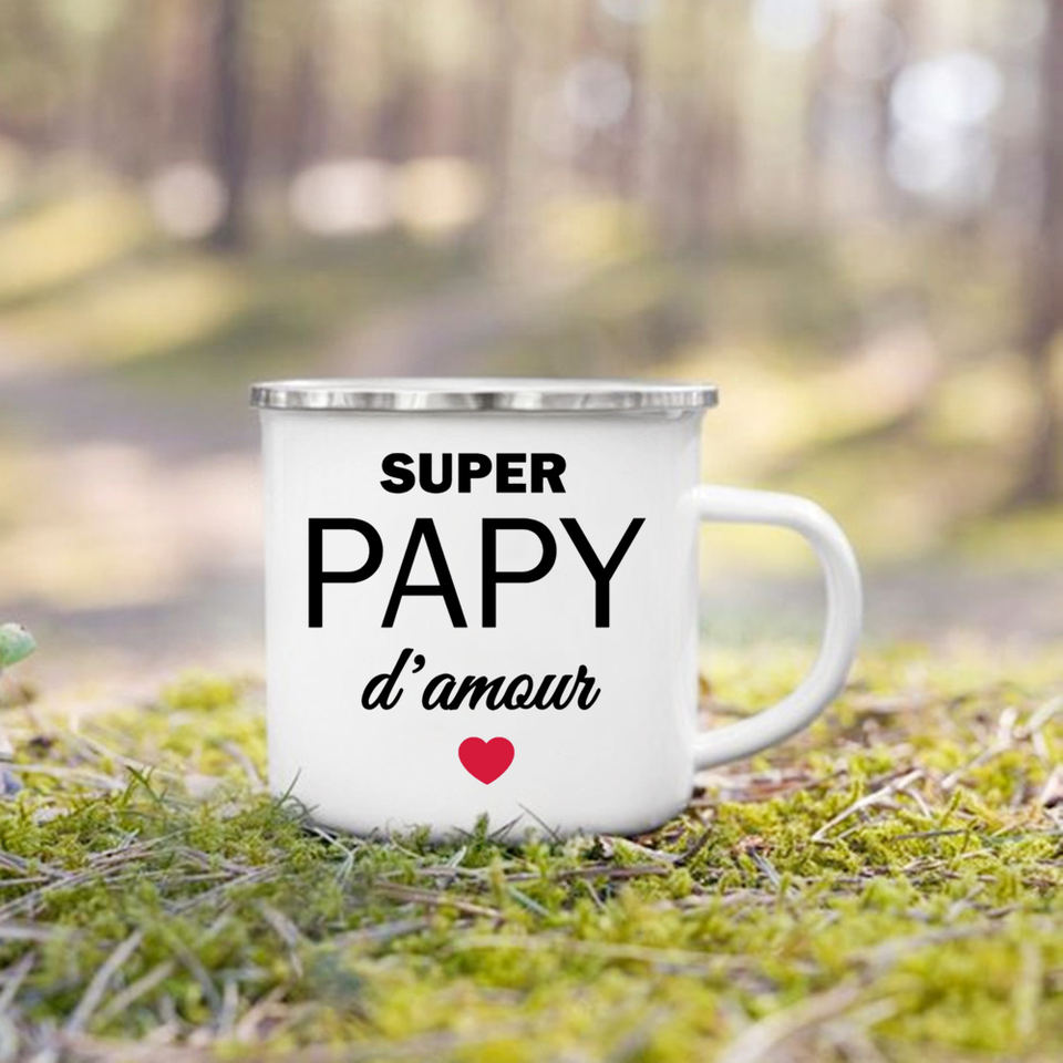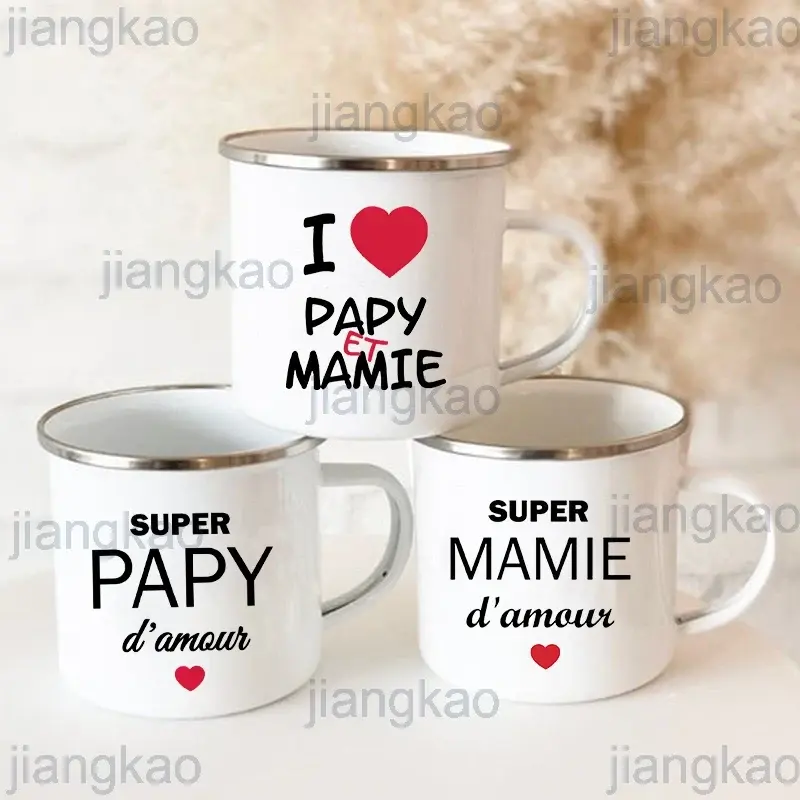 Tasse en émail imprimé Super Papy Mamie tasses à café créatives boissons eau lait tasse émail tasse maison verres cadeaux pour grand-mère grand-père