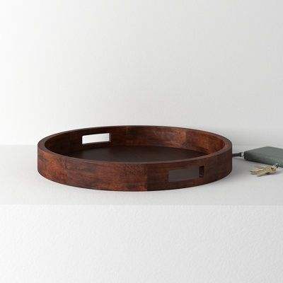Plateau de service en bois de forme ronde au design antique de super qualité avec poignées en métal noir forme et taille personnalisées pour fête à la maison