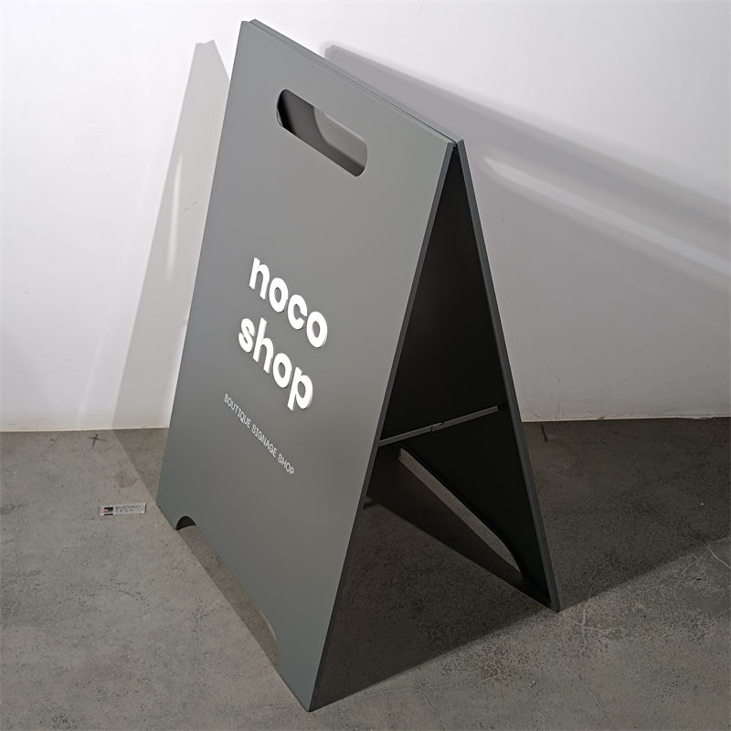 Enseigne commerciale à cadre en acier inoxydable personnalisée de super qualité, support de sol extérieur double face, panneau d'affichage publicitaire en métal