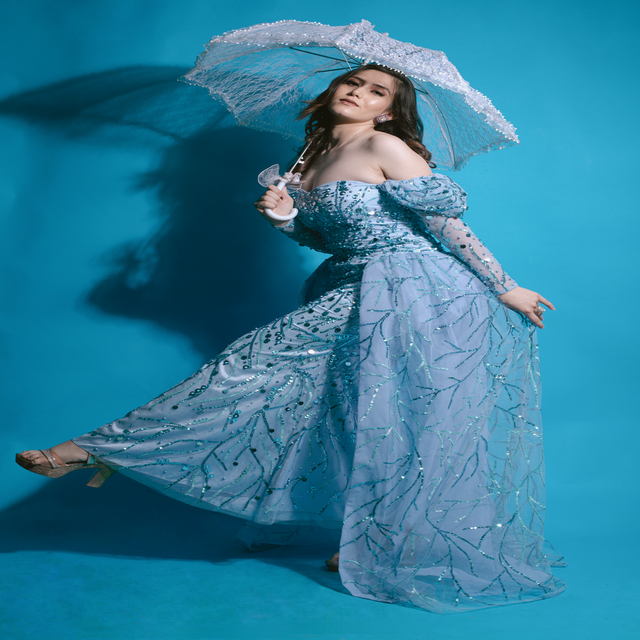 Premium mesh with full sequin embroideryMaterial