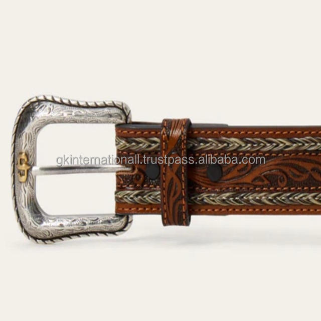 Ceinture en cuir de style western de qualité supérieure, à bords tressés à la main, pour hommes et femmes, avec boucle de créateur plaquée argent
