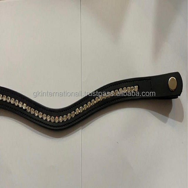 Bande de sourcils de cheval en cuir fait à la main avec 1 rangée de cristaux dorés, strass, chaîne bling, Super qualité