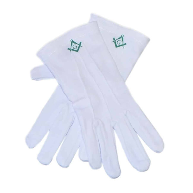 Super Quality Men White Heavy Cotton Gloves Embroidered Crafts Blue Square and Compass Logo White Soft Quality