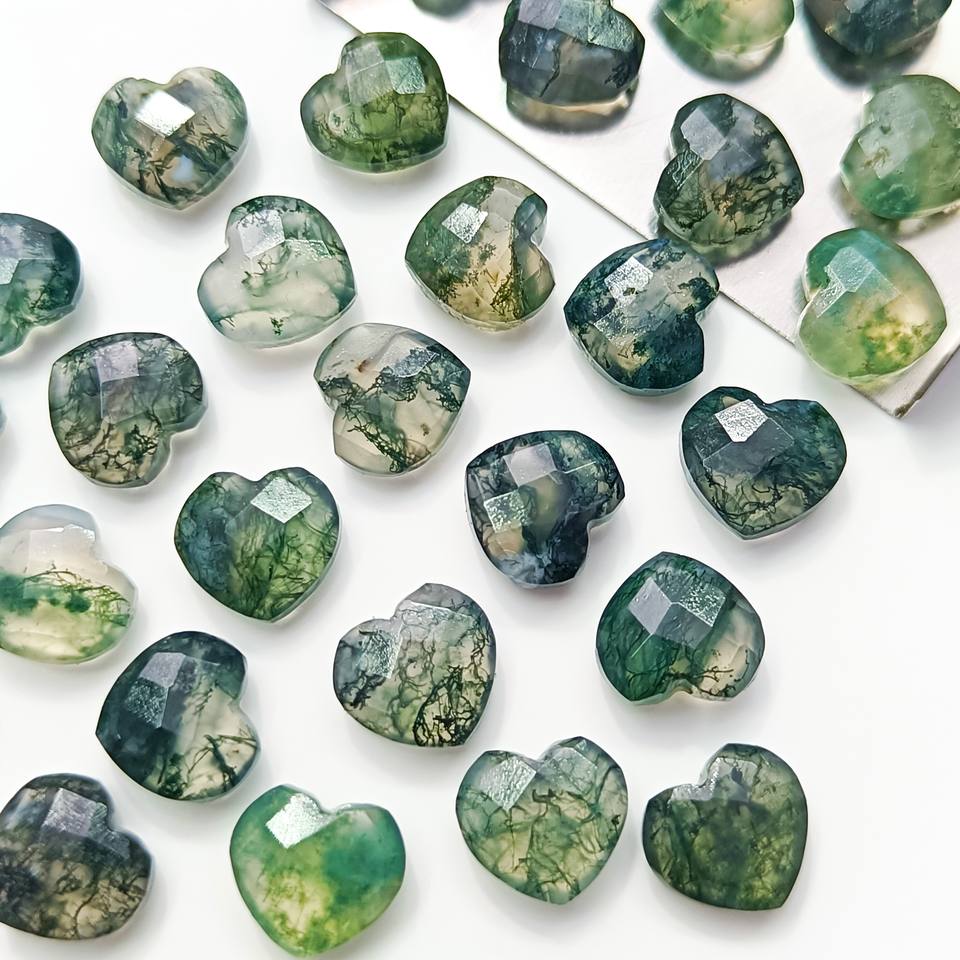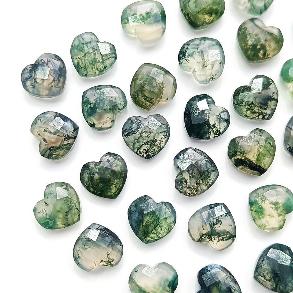 Product name:Moss Agate Faceted Heart Carved Beads