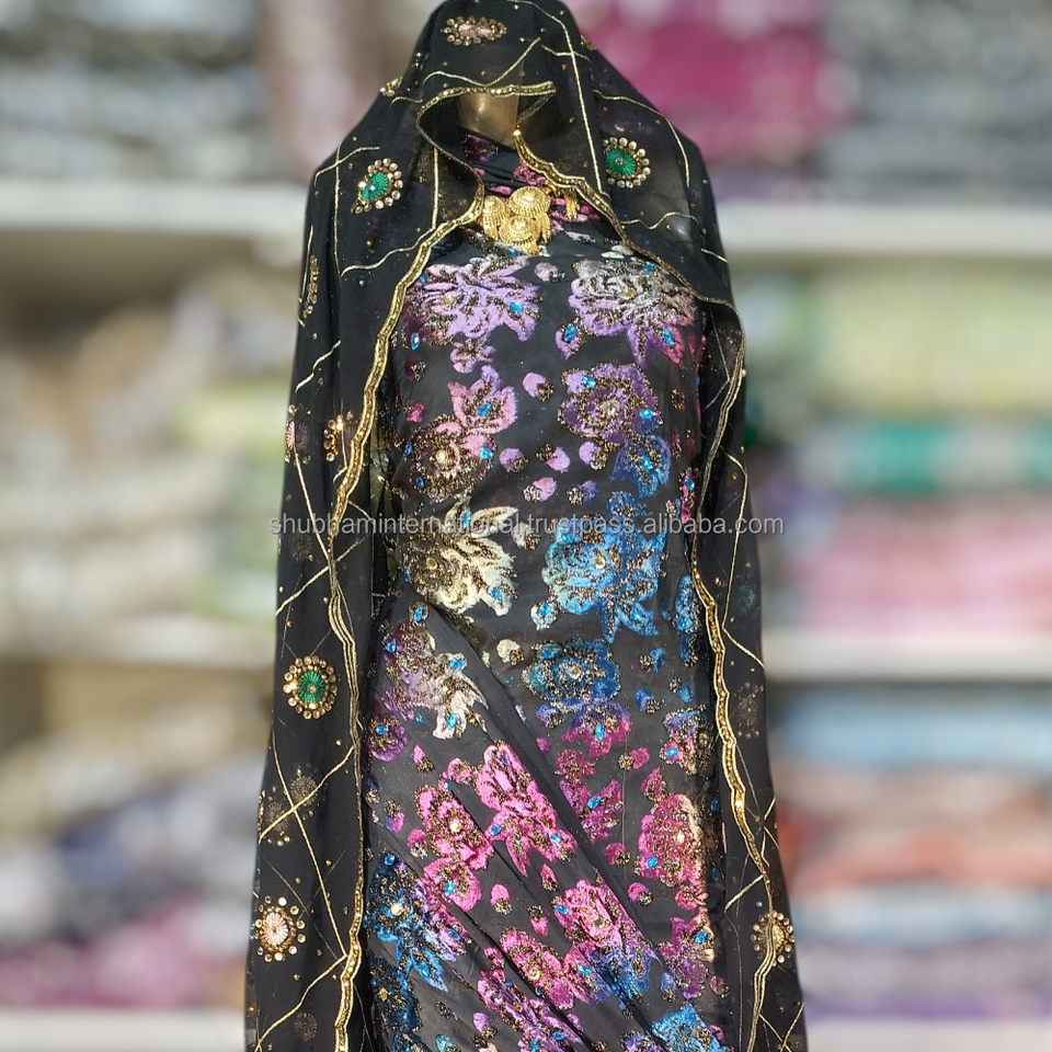 Super Quality Somalian Maqbal Dirac With Multi Colour Glitters and Beautiful Design With Stones by Indian Manufacturer