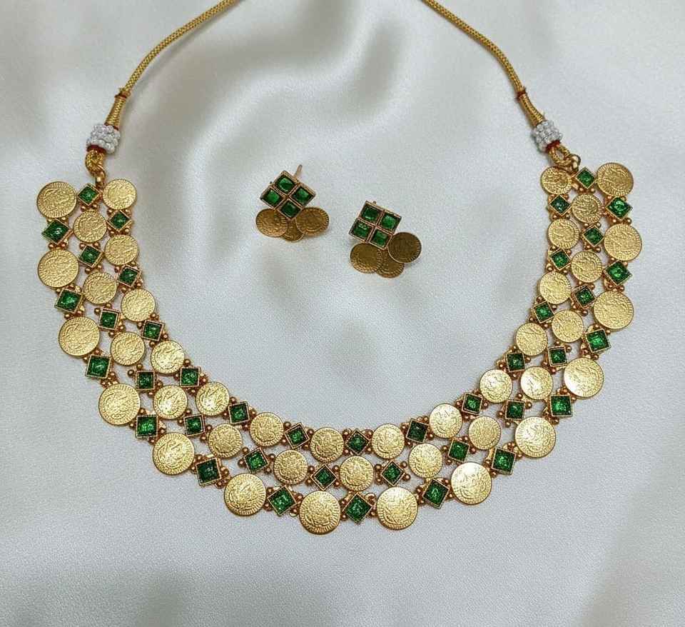 Products Name:Traditional Tempal Laxmi Necklace Jewellery Set