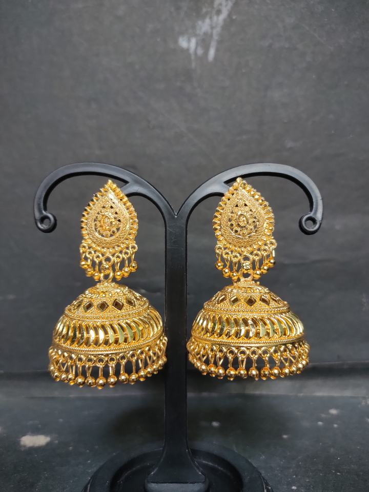 Boucles d'oreilles super vendues serties de boucles d'oreilles Jhumka plaquées or 22CT de conception traditionnelle bijoux pour les femmes portées par les exportateurs