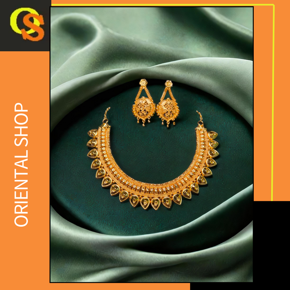 Super Selling Necklace Earrings Set with 22K Gold Plated Unique Designed Women Wear Necklace Earrings Set Jewelry