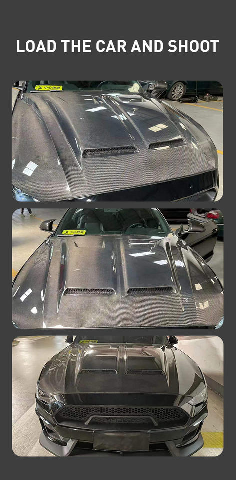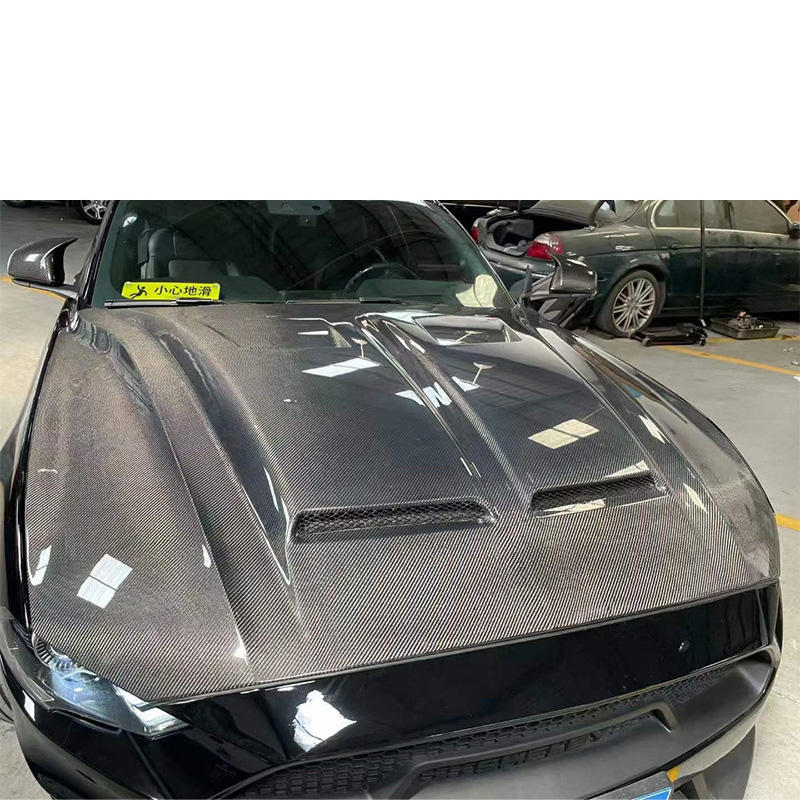 Capot de moteur de capot avant en Fiber de carbone Super Snake deux évents pour Ford Mustang 2018-2022