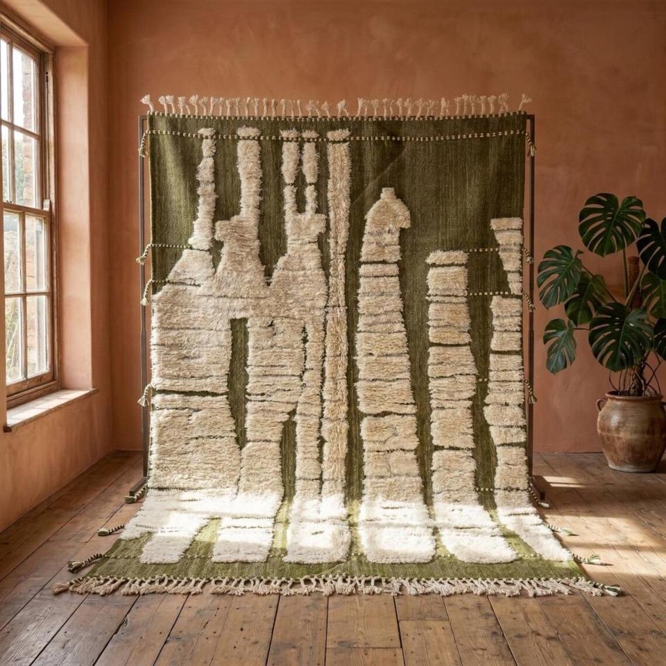 Tapis en laine marocain Beni Ourain noué à la main – Tapis berbère géométrique bohème fait main, sur mesure, vente en gros