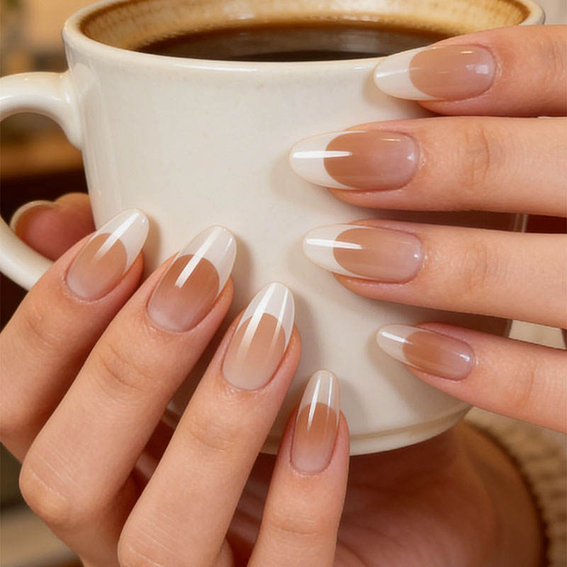 Faux Ongles Super Épais Effet Ombré Style Français 280 Pièces/Boîte 14 Tailles Matériau PMMA à Coller Vente en Gros