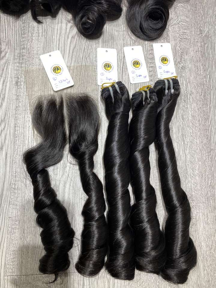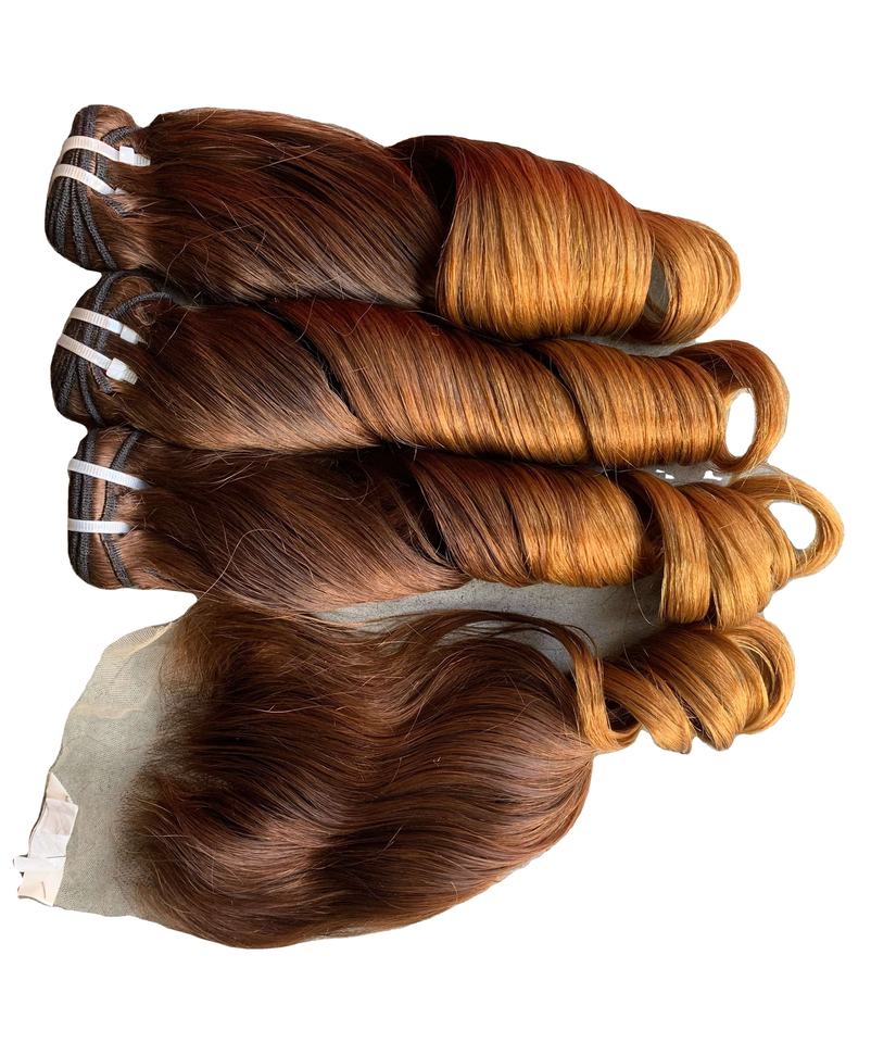 Cheveux humains vietnamiens Remy super double tirés, texture rebondissante avec dentelle HD, style bouclé, prix de gros auprès d'un fournisseur vietnamien