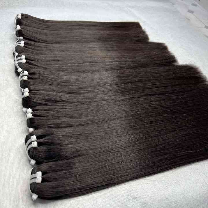 Extensions de cheveux raides à cuticule 100% alignées sans perte d'os non traitées super doublement étirées