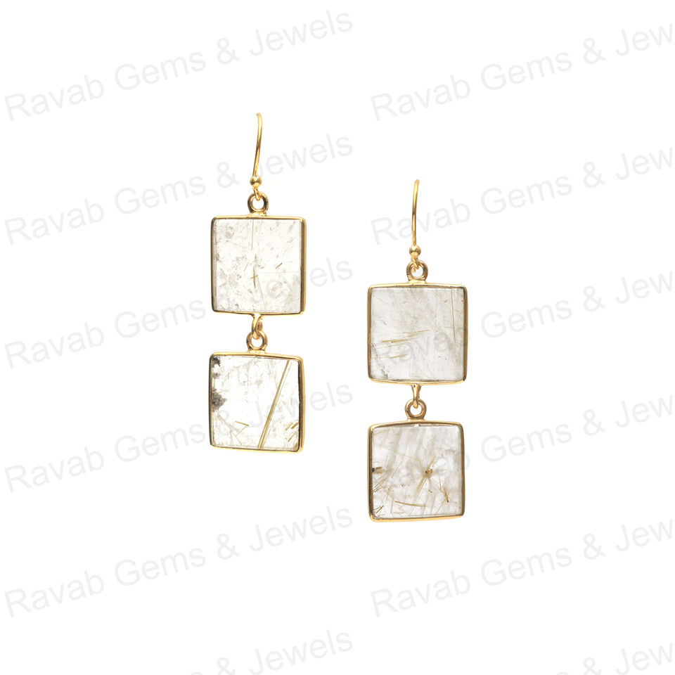 Nom du produit:Boucles d'oreilles pendantes en argent sterling plaqué or, forme rutile doré.
