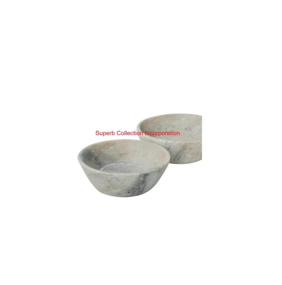 Superbe collection incorporation de bols en marbre naturel fabriqués à la main ensemble de bols de service et de décoration en pierre grise blanche pour la décoration intérieure