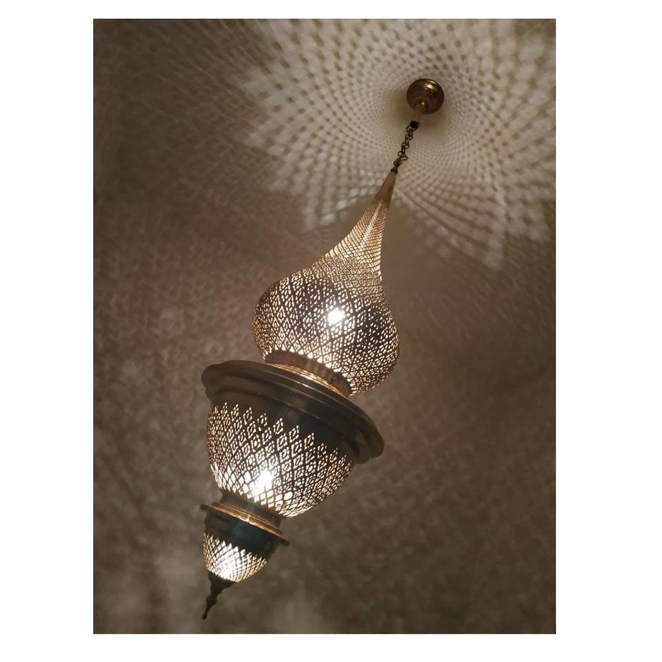 Superbe Grand Pendentif Marocaine Lumière En Laiton, Lustre Antique En LaitonMode