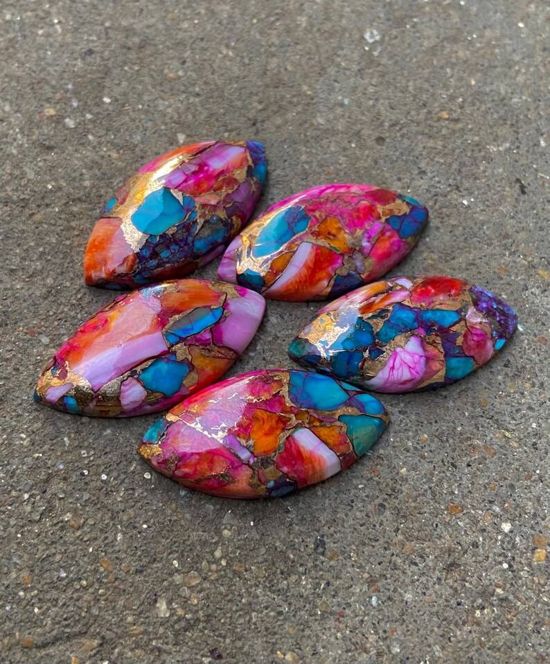 Nom du produit:Pierre précieuse en vrac de forme ovale lisse, huître rose naturelle, cuivre, Turquoise